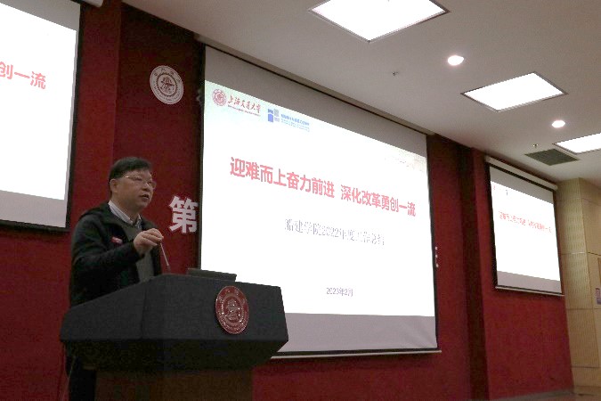 院长廖世俊向大会作主题为“迎难而上奋力前进 深化改革勇创一流”的《船建学院工作报告》,介绍了学院2022年度在党建引领、师资队伍、人才培养、科学研究、文化建设等方面取得的成绩,表示过去的一年里在全体师生共同努力下,学院取得了多项标志性成果,为学院新一轮高质量快速发展奠定了良好基础。