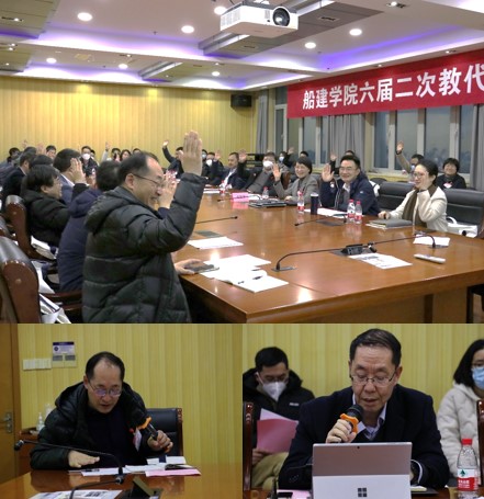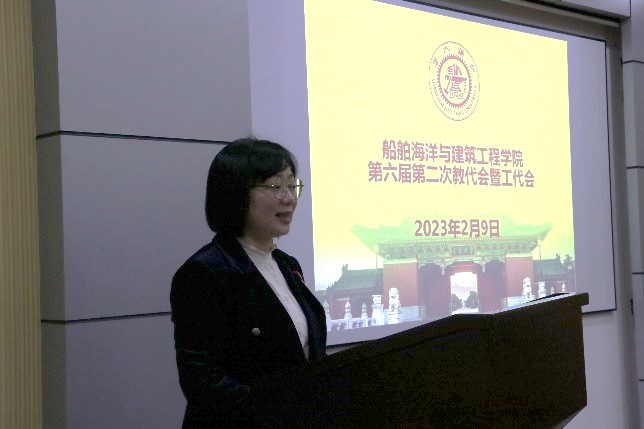 2023年2月9日下午,船建学院在木兰楼A1002会议室召开六届二次教代会暨工代会。校工会副主席肖国芳、船建学院领导班子成员、学院教代会代表、列席代表参加会议。会议由院工会副主席袁敏主持。