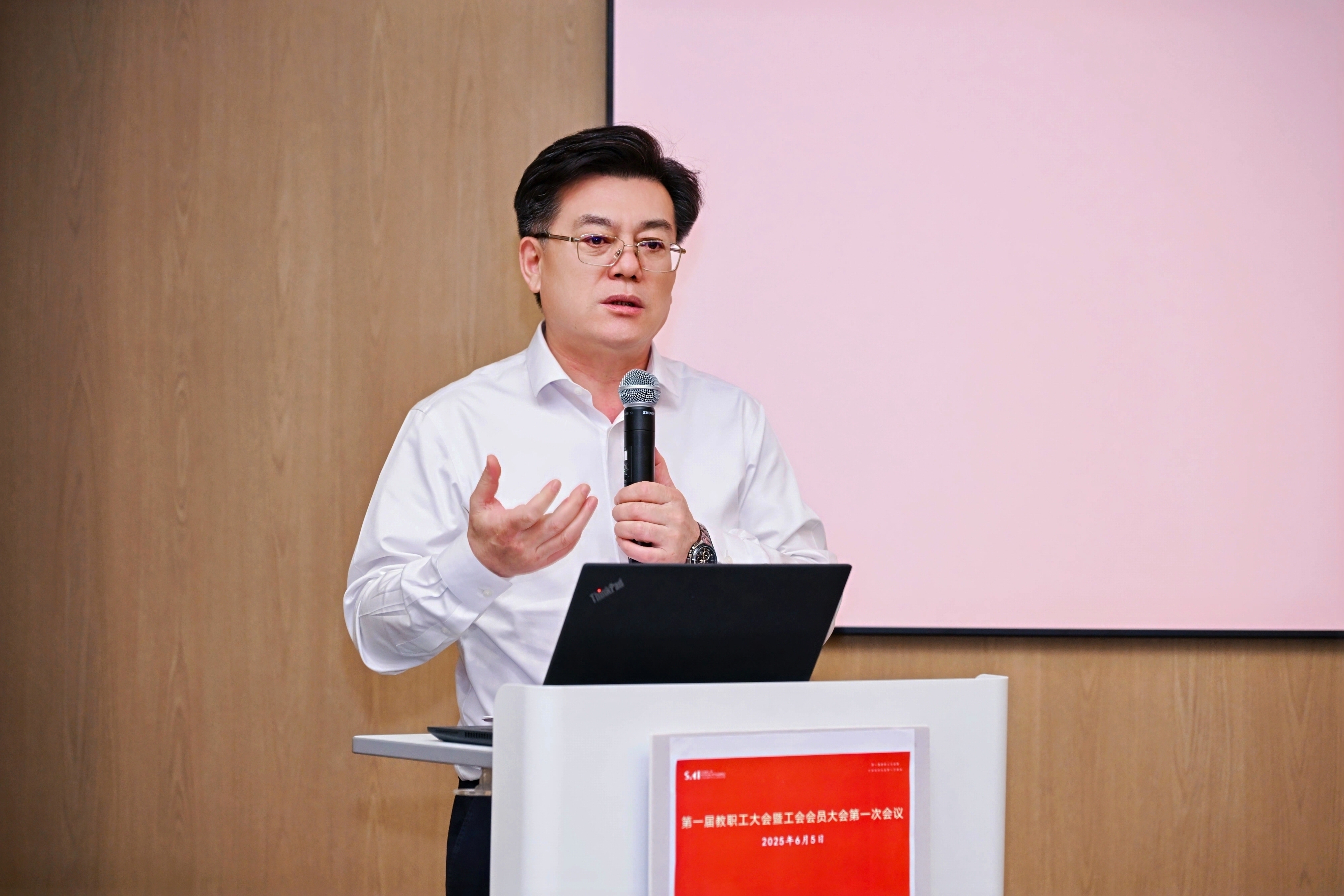 2025年6月5日,欧宝app官方网站下载人工智能学院第一届教职工大会暨工会会员大会第一次会议在徐汇校区人工智能学院大楼502会议室隆重举行。校长助理、校工会主席于朝阳,学院首席顾问鄂维南院士,党委书记杨一帆,执行院长王延峰,副院长张娅、卢策吾,院长助理严骏驰及学院全体教职员工参加会议。会议由学院党委副书记许淼鑫主持。