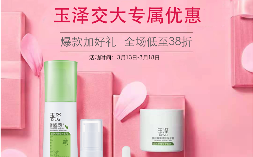 优惠活动 | 你的皮肤屏障修护专家来了!玉泽交大专属优惠低至3.8折