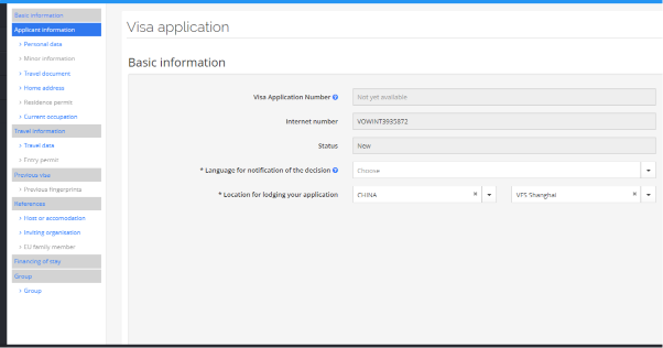 3)请注意,申请提交地点请选择:CHINA + VFS Shanghai 预约后到上海领馆时,领馆会将地点更改为领事馆。