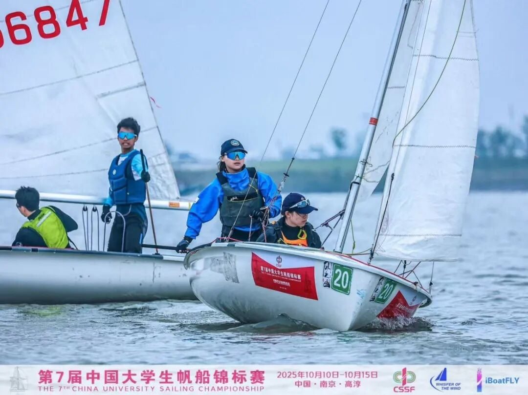 李禹佳在本次中国大学生帆船锦标赛中担任缭手