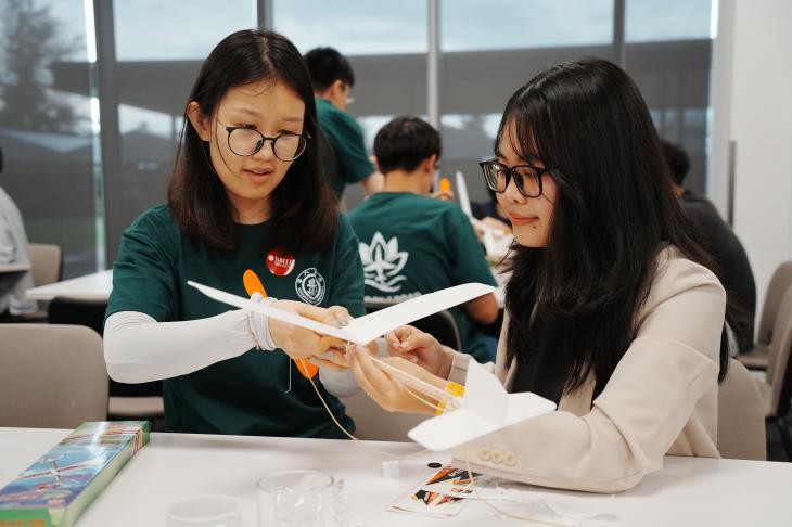在学术交流环节,越南籍交大学子范芳英和阮玉玲向RMIT的同学们介绍了交大在学科建设、科研创新及国际化人才培养方面的优势,并分享了他们在交大丰富多彩的校园生活。RMIT的学生代表则展示了该校在航空工程、无人机系统及飞行器设计等领域的创新研究成果。随后,全体同学共同参与了“飞行器设计工作坊”,中越学子混合编组,在限定时间内完成了从概念设计到模型制作的全流程。两国青年在科技实践中深化了友谊。