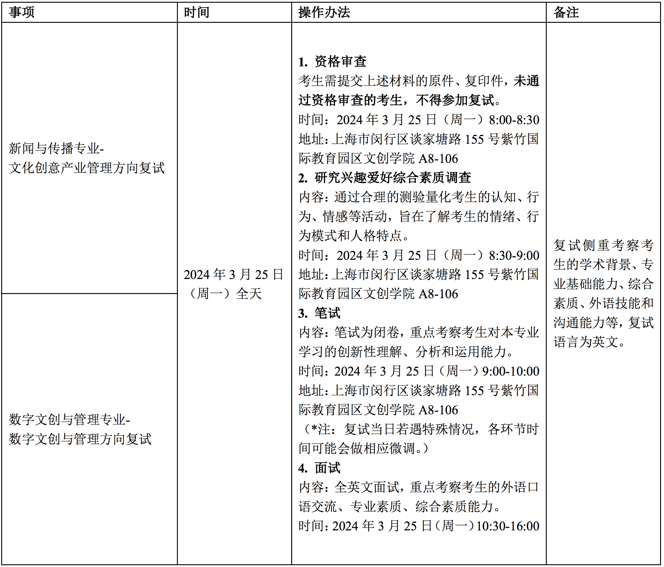 根据欧宝app官方网站下载研究生院有关文件要求,结合学院实际情况,经上海交大-南加州欧宝体育下载app网址创意产业学院(以下简称“文创学院”)研究生招生复试工作指导小组集体研究决定,2024年文创学院硕士研究生复试分数线及名单公示如下: