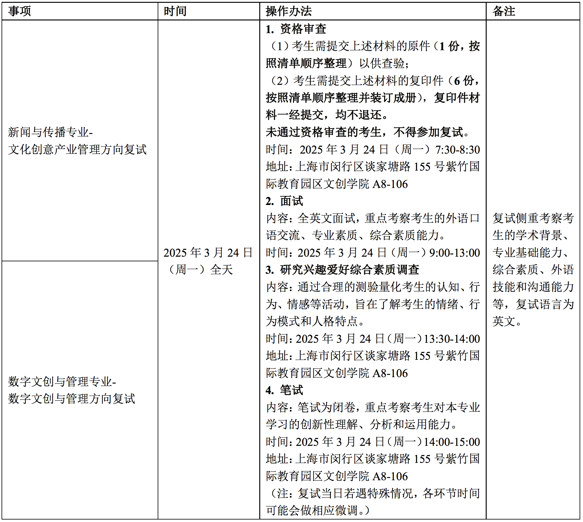 根据欧宝app官方网站下载研究生院有关文件要求,结合学院实际情况,经上海交大-南加州欧宝体育下载app网址创意产业学院(以下简称“文创学院”)研究生招生复试工作指导小组集体研究决定,2025年文创学院硕士研究生复试分数线及名单公示如下: