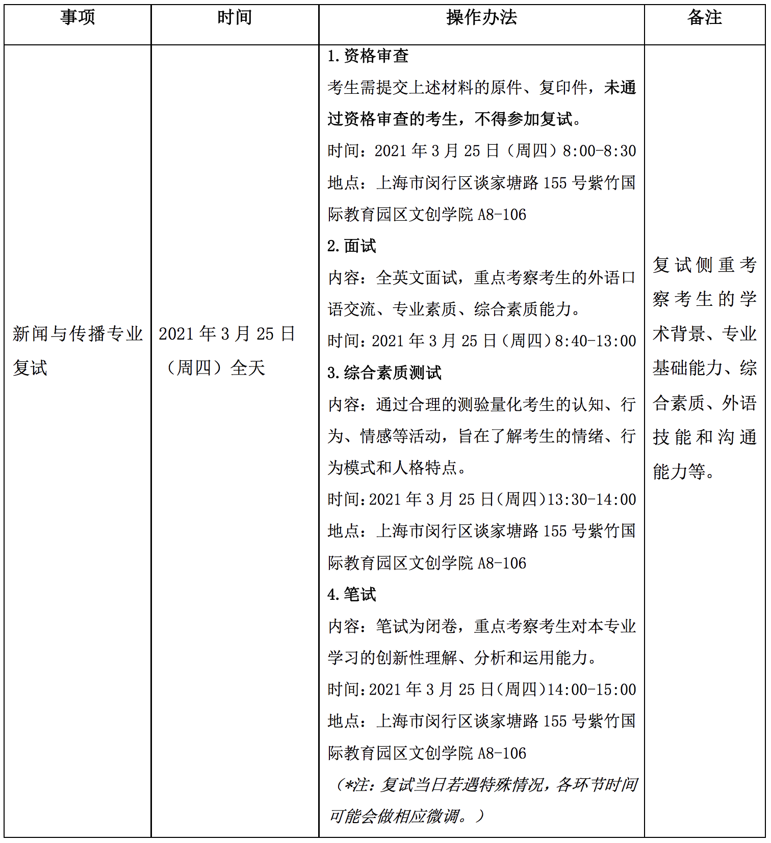 2. 考前14天内有国(境)外或非低风险地区活动轨迹的考生,不得参加线下复试,并按上海市疫情防控最新规定进行处理。