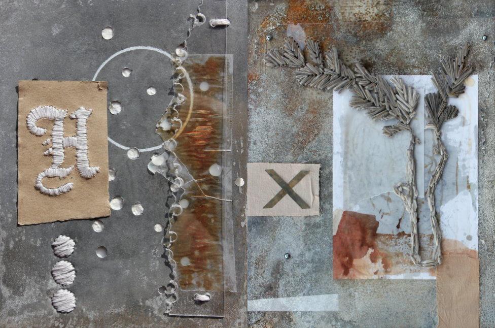 (right) BETWEEN MEMORIES, 2023, collage on a aluminum sheets | photo: Author
