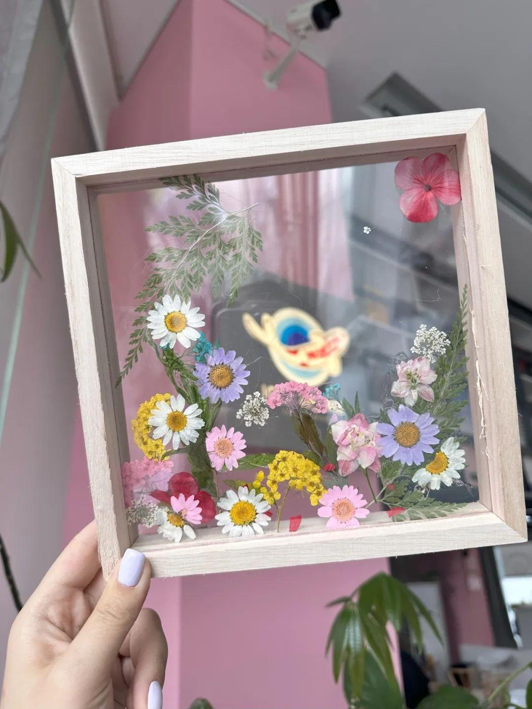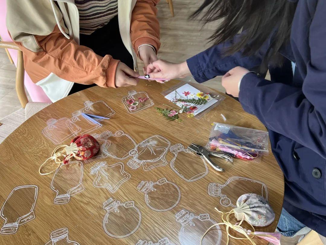 通过精心选择的春季鲜花,同学们将这些自然之美压制于相框之中,使其成为一件件独一无二的文创产品。