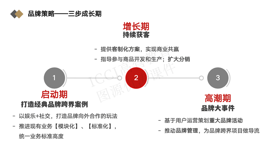 (1)三步成长期品牌策略的构建与发展是一个复杂而精细的过程,它横跨品牌的启动期、增长期和高潮期的全生命周期。每个阶段都承载着特定的挑战,要求企业明确战略目标、采取相适应的策略,以确保产品成功转化、品牌持续成长并最终实现稳健发展。