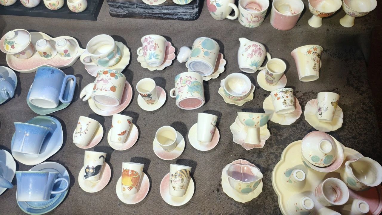 调研团队在街区走访时,正值周末市集开市。入口处的摊主多为“景漂”创客,摊位上木叶盏、青花杯等陶瓷作品与木雕等手工艺品错落摆放。通过与多位陶艺创作者交流,实践团了解到许多陶瓷工艺品都选择用景德镇传统釉料调配的新色系加入当代流行纹样与元素,相比传统器皿,一些具有萌属性的IP形象更受年轻人欢迎。
