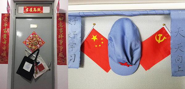 有同学将长期闲置的帆布袋作为创意装饰,别具一格地挂在了寝室门口。还有同学将“一·二九”歌会穿过的演出服装进行创意剪裁,以此激励自己好好学习,天天向上。