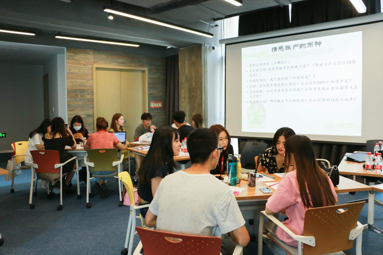 “情感账户”是心理学上的概念,指的是人们通过“存款”和“取款”模拟来进行日常人际交往中的情感调节。汪国琴现场开展了有关“爱的五种语言”的小测试,让每个同学能够进一步了解自己的情感定位和深层次需求。同学们互相分享自己的感想,讨论出未来属于彼此的“珍珠时刻”。