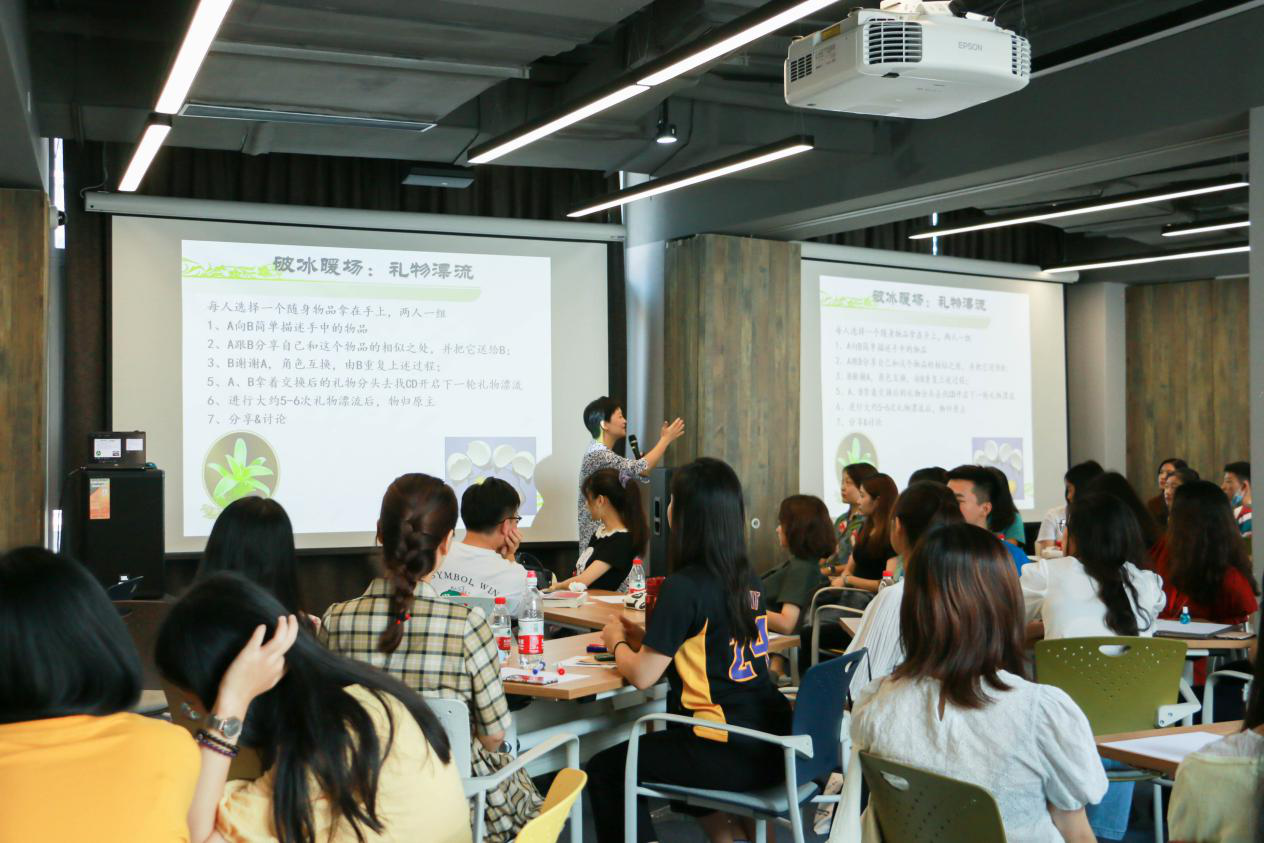 活动初始,汪国琴鼓励同学们调换座位,走出舒适区,尝试以往自己不敢选择的位置,随后借此引入心理共建主题——“把相遇变成礼物”。