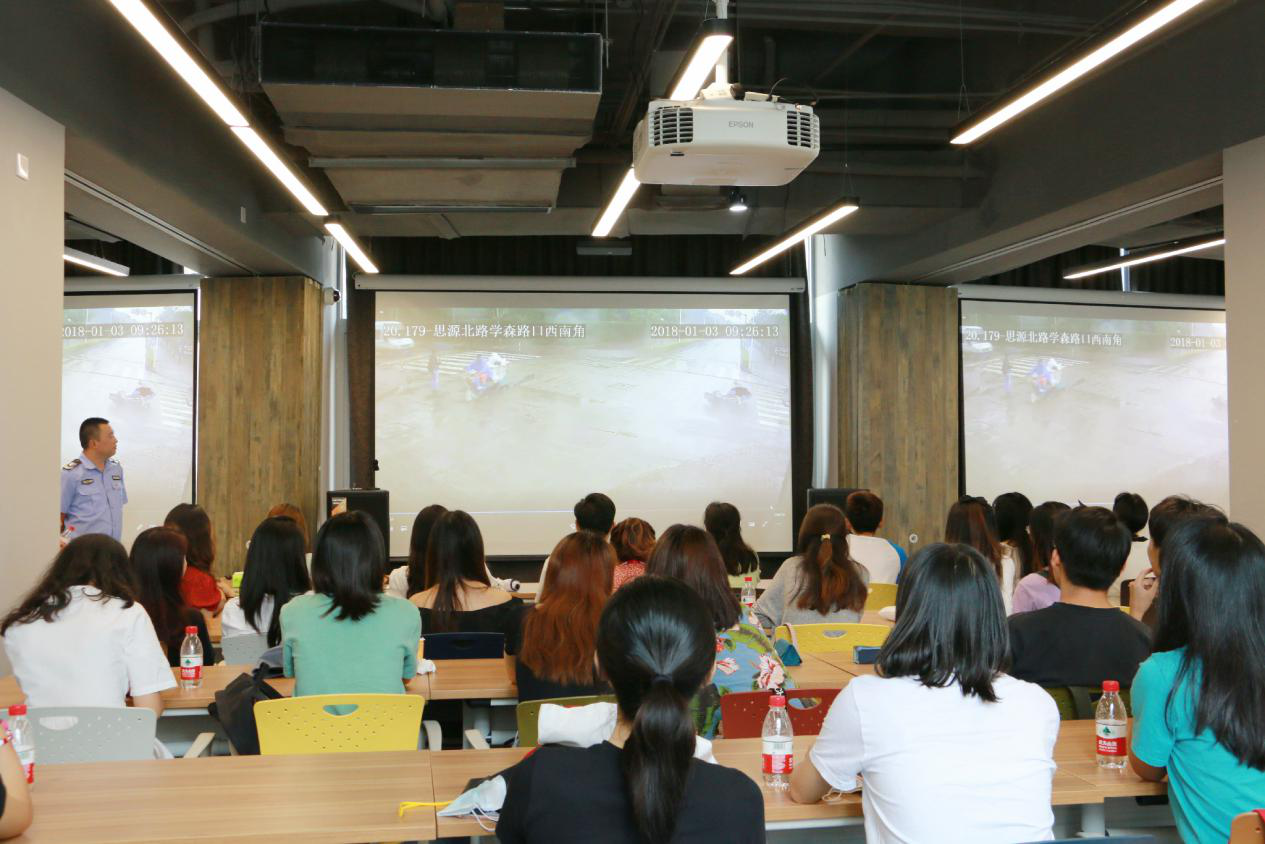 杨立志首先介绍了校保卫处的业务范围,随后通过对盗窃案件和诈骗案件的案例分析,提醒新生留意盗窃案件的高发场所(教室、运动场所、餐厅等),叮嘱大家做好人身安全和财产安全防护。同时,结合文创学院校外办学的特点,杨立志就校区间交通和人身安全做了重点提示。