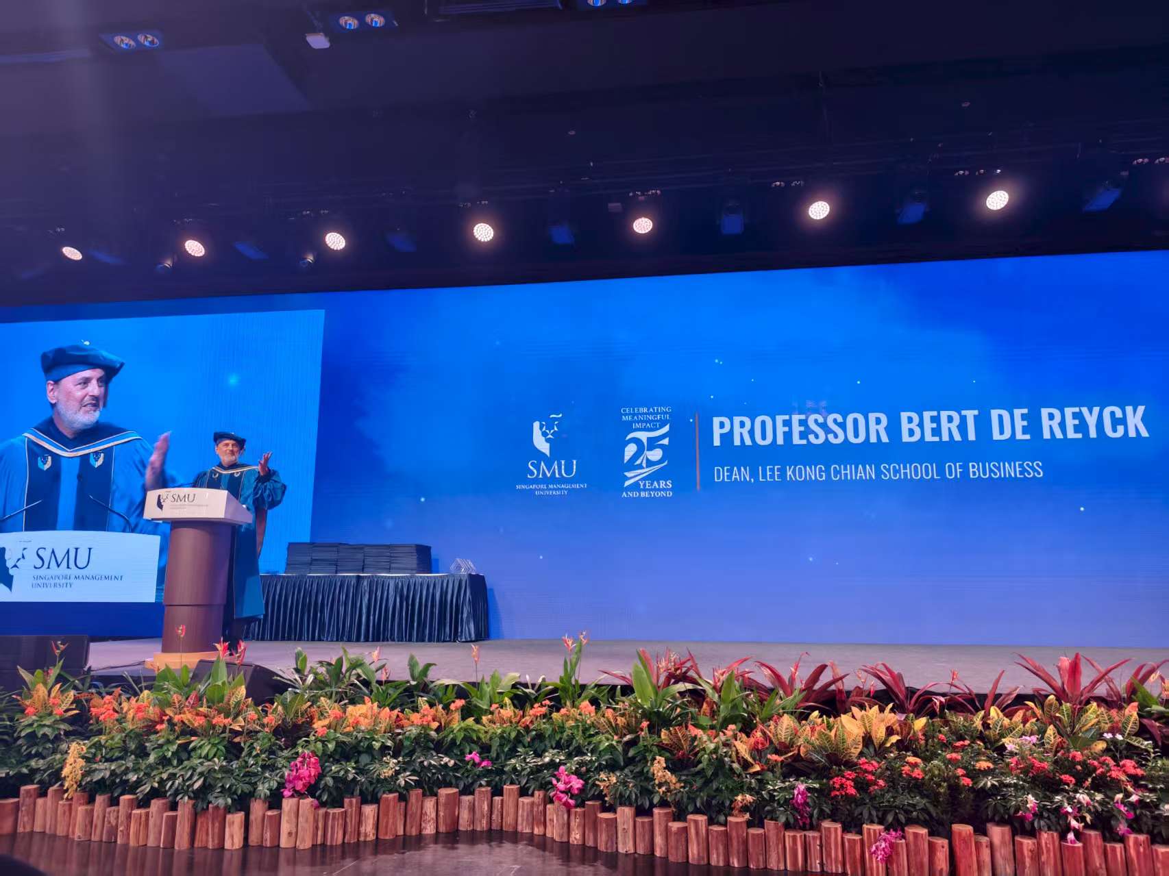 典礼上,李光前商学院院长Bert DE REYCK向全体毕业生致以最诚挚的祝贺,高度肯定了学员们在学习期间展现出的求知精神、专业素养和取得的卓越进步,并勉励他们将所学知识应用于实践,为社会创造更大价值。工商管理博士学位证书标志着同学们人生和职业生涯的一个重要里程碑。同学们纷纷表示,这段宝贵的学习经历不仅系统提升了他们的战略思维、领导力、跨文化沟通能力,更拓展了国际视野,建立了深厚的同窗情谊。
