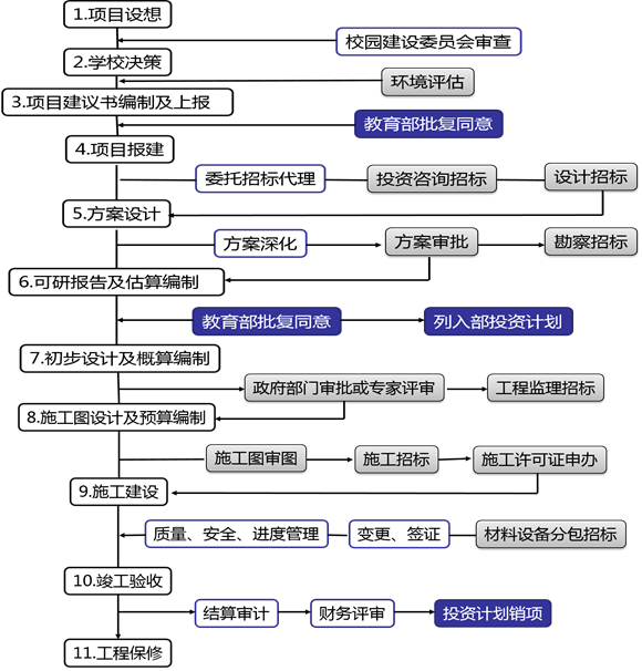根据学校的整体建设规划和具体要求,基建处根据本规定,实施建