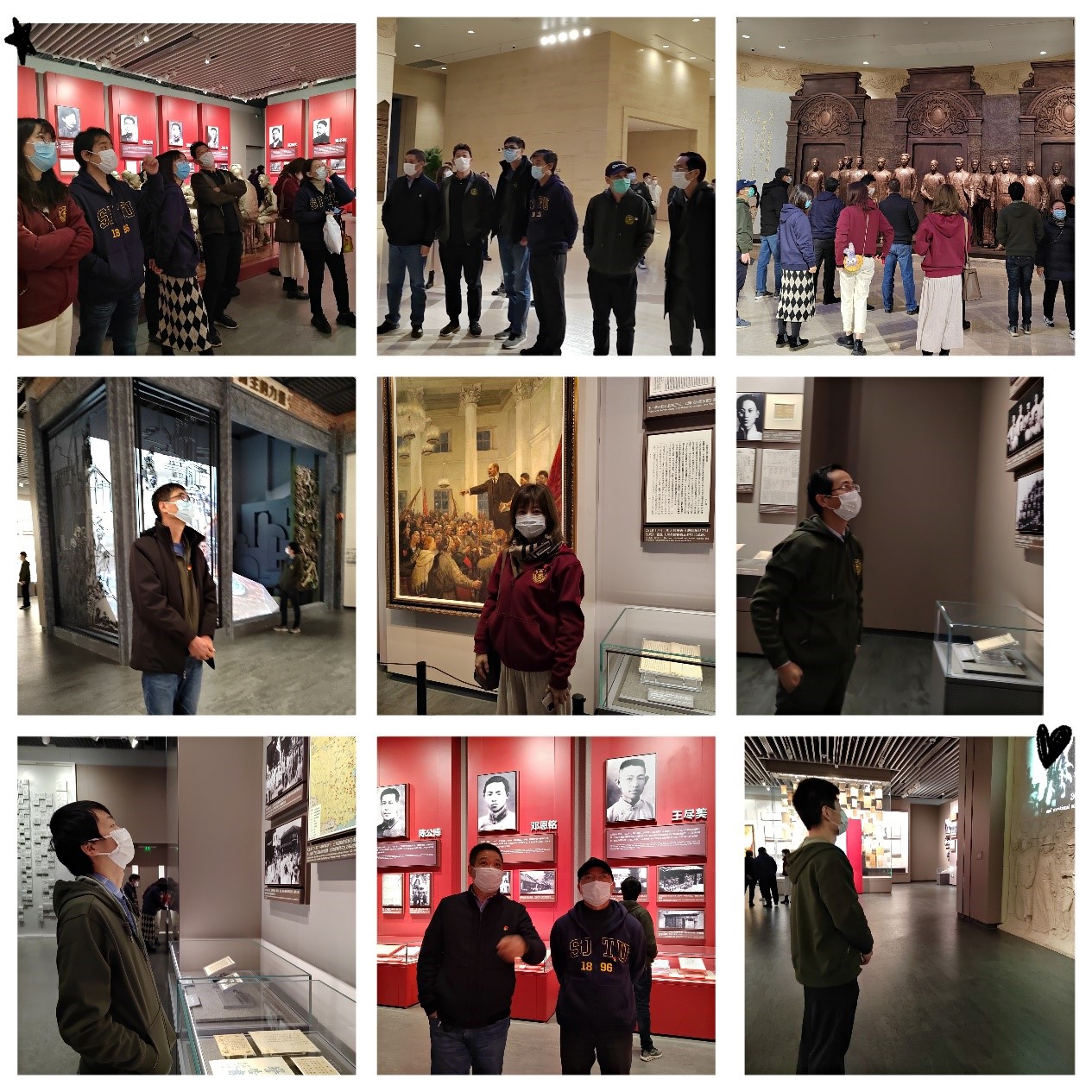 进入一大纪念馆内,印有鲜红党旗和记录中国共产党伟大历程的大幅壁画首先映入眼帘,场馆神圣而庄严,党员们在党旗下合影留念,记录下这一具有纪念意义的时刻。