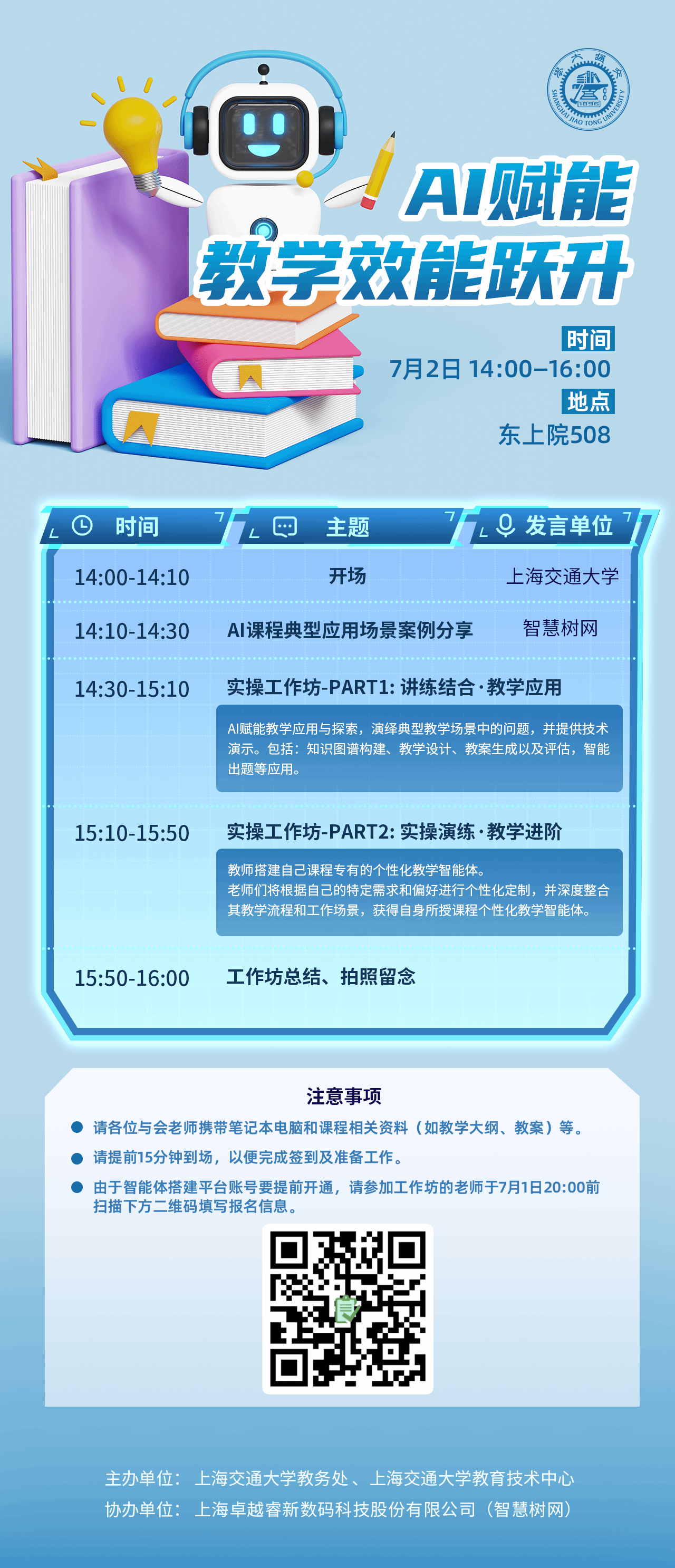 我们期待您的参与,共同探讨AI如何助力教学创新,推动教育的现代化进程。如有任何疑问,请随时与教务处教学研究办联系021-34206415。