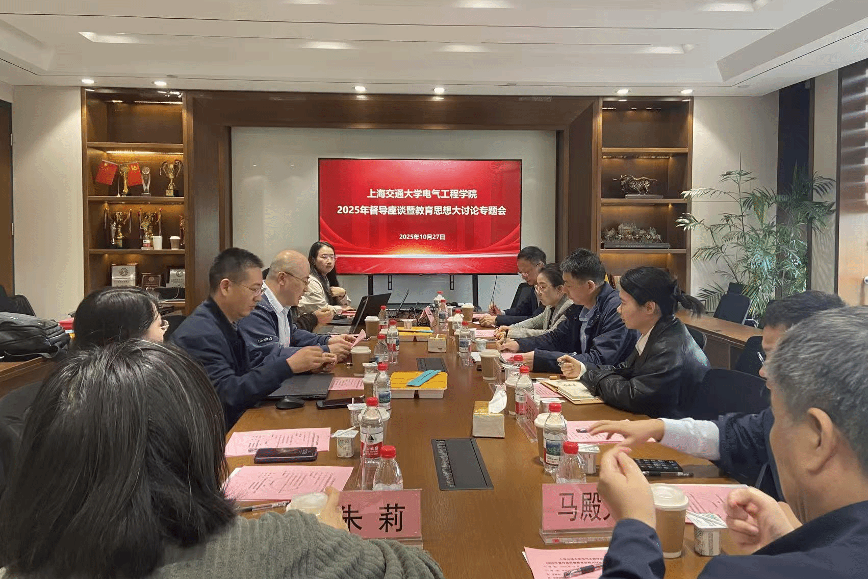 为深入贯彻落实学校第十次教育思想大讨论工作部署,扎实推进本科教育教学质量提升与人才培养模式创新,电气工程学院于2025年10月27日在电院群楼1-318会议室组织召开“教学督导座谈暨教育思想大讨论专题会”。学校教学督导委员会副主任、机械与动力工程学院教授杨培中,教务处质控办主任张亭亭和居辰阳老师受邀参加座谈。学院副院长李睿、院长助理冯琳、全体教学督导委员及教务办公室相关教师共同参会。会议由李睿主持。