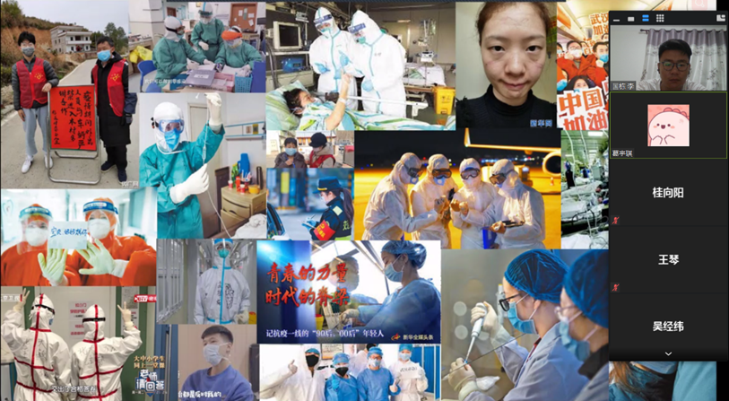 随后,党支部党员代表王琴和葛宇琪为参会党员深入解读了“五四”青年精神。王琴对习近平总书记“五四”寄语进行解读,“青春由磨砺而出彩,人生因奋斗而升华”,习总书记恳切的话语激励着青年们不断开拓创新,在广大青年中引发强烈共鸣和热烈反响。由此,她联想到哔哩哔哩在五四青年节发布的公益广告《后浪》。时代青年们的心中有火,眼里有光,积极进取,正一步步成长为奔涌的后浪。葛宇琪则解读了习近平总书记给北大援鄂医疗队“90后”党员的回信,这封信向全国人民汇报前线“90后”的工作情况和青春风采,传达出 “90后”的声音。自巴黎和会外交失败的爱国运动兴起,百年已逝,但时代青年斗志昂扬的精神面貌依旧。恰同学少年,风华正茂!每一代青年都有他们独有的历史机遇,每一代青年都会留下他们独特的时代烙印。