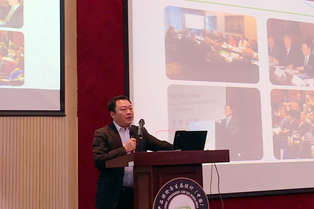 联合国工业发展组织绿色产业平台项目总监赵亮作“探寻绿色发展趋势,助力生态文明建设”的主题演讲。