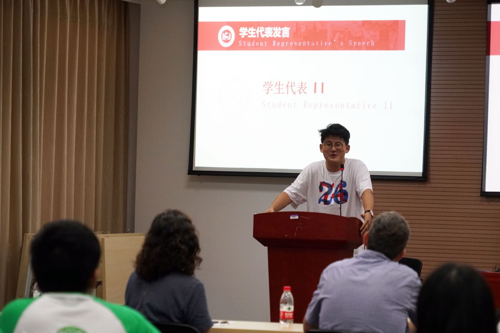 闭幕典礼中,学院根据专家对每个小组演讲和报告的评分,评选出了两组优秀小组。许敏、Dan van der Horst上台为学生代表颁奖。学生代表张庭玮、昂安坤和大家共同分享他们的感想,共同表示通过此次暑期学校学习学到了新思想、新概念、新知识。