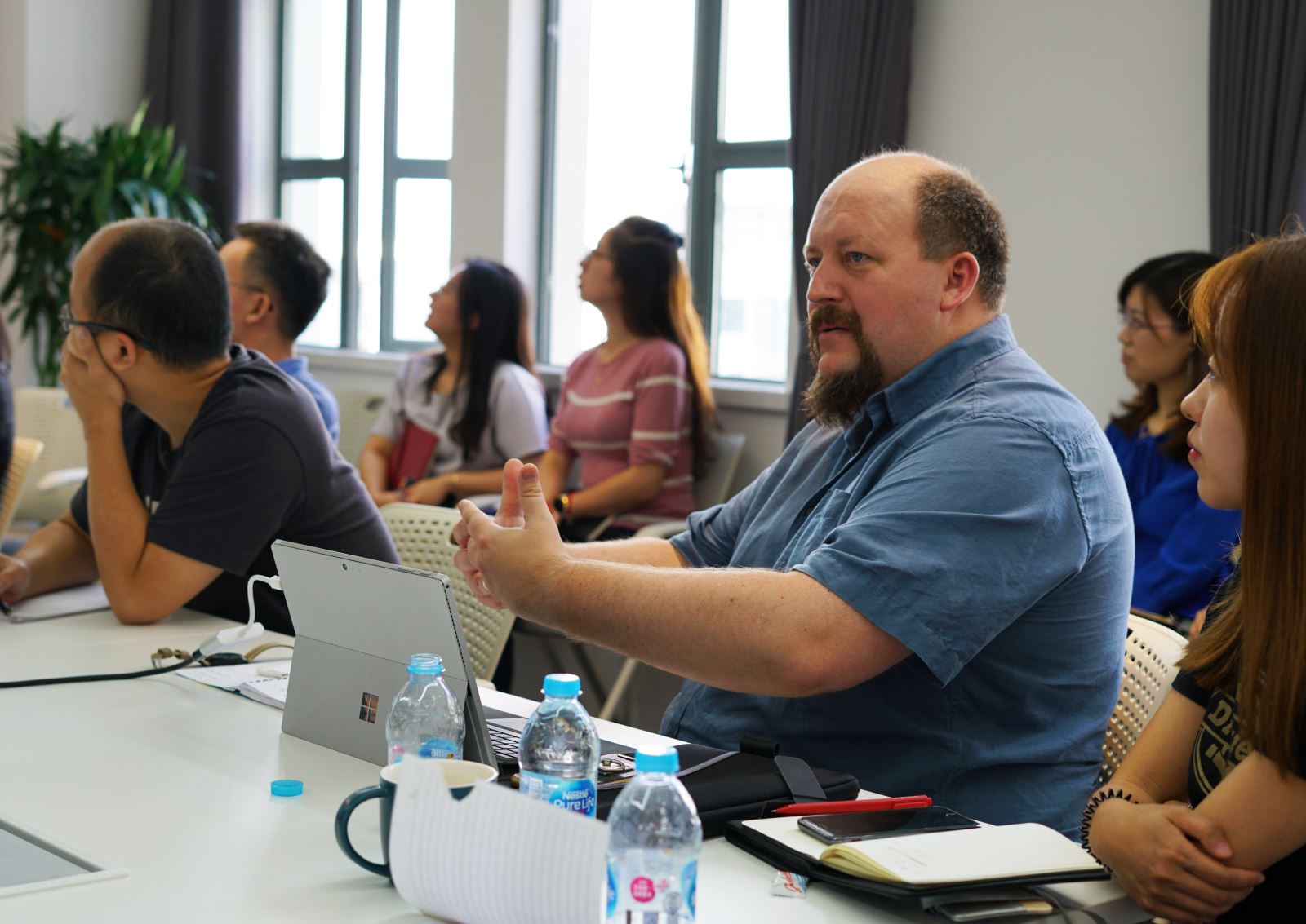 作为学院新聘的分管爱丁堡事务的副院长,Edward Craig向与会人员做了自我介绍,他表示非常荣幸来到低碳学院工作,并期待在未来的工作中,能为学院在创造国际影响力方面发挥作用。Edward Craig为参会教职工介绍了爱丁堡大学在低碳领域科研、产业方面的进展和趋势,同时展望了低碳学院的发展未来。Edward Craig表示,低碳学院是一个有着巨大发展潜力的学院,作为全国首家低碳学院,不仅拥有两所世界一流大学的厚实根基,还拥有临港得天独厚的产业区位优势,在世界的绿色低碳发展大背景下,必将成就重要的历史地位。