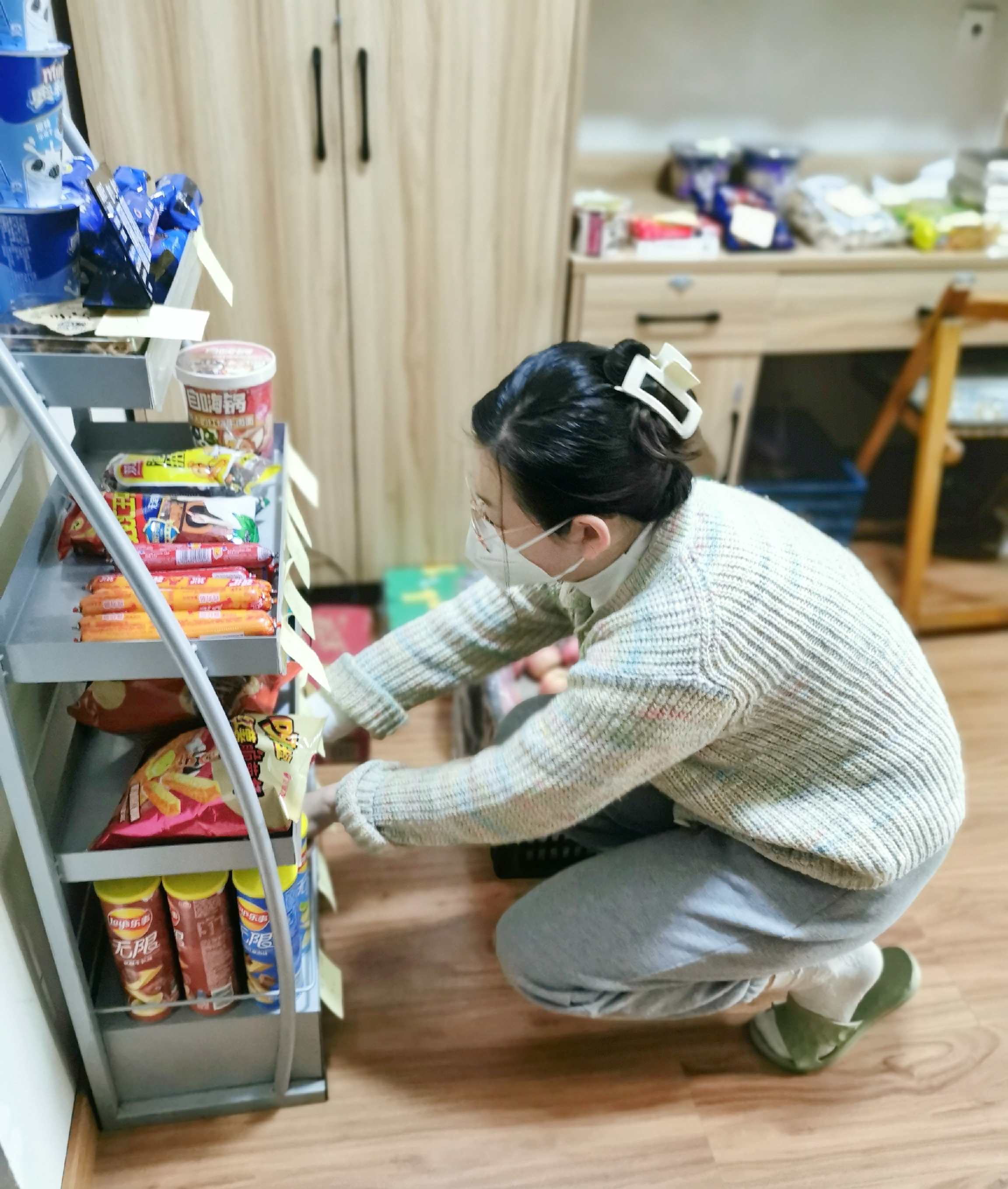 随着疫情的发展和最新防控政策,为保障学生安全,临港人才公寓学生宿舍学生保持足不出户,老师们也被隔离在社区外。为了保障学生们的正常生活,吴晓鑫积极响应号召,与宿管阿姨春红一起负责大家食材、物资、快递的接收、分拣与消杀等工作,并一一将其配送到每个宿舍门口,从而确保每位学生能正常学习与生活。她以实际行动践行了一名预备党员、一名交大学子的使命与担当。