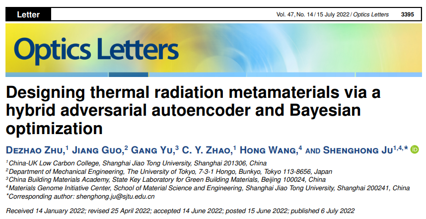 科研成果 | 低碳学院鞠生宏团队在Optics Letters期刊发表最新研究进展:实现融合对抗自编码器与贝叶斯优化的热辐射材料设计