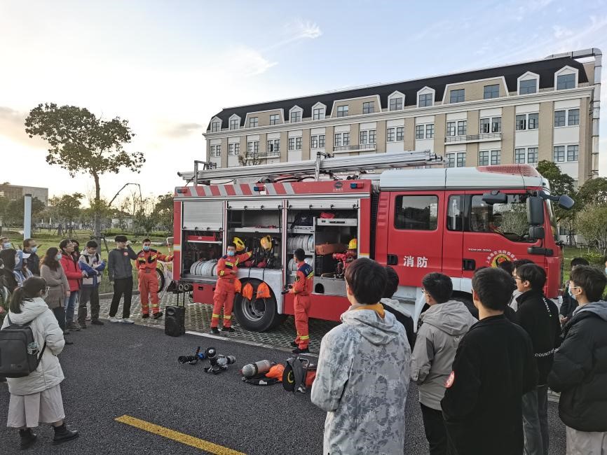 演练开始前,在学院主楼5楼报告厅来自浦东新区消防支队的消防队员结合近年来的典型的火灾案例,深入浅出地讲解了校园消防安全巡查、火灾隐患自查自纠、安全用火用电用气、扑救初期火灾等方面的消防安全知识,他提醒师生们消防意识麻痹是火灾事故频发的重要原因,在面对校园火情时,要牢记“救助结合,保持镇静,明辨方向,迅速撤离”的原则,保障好生命安全。