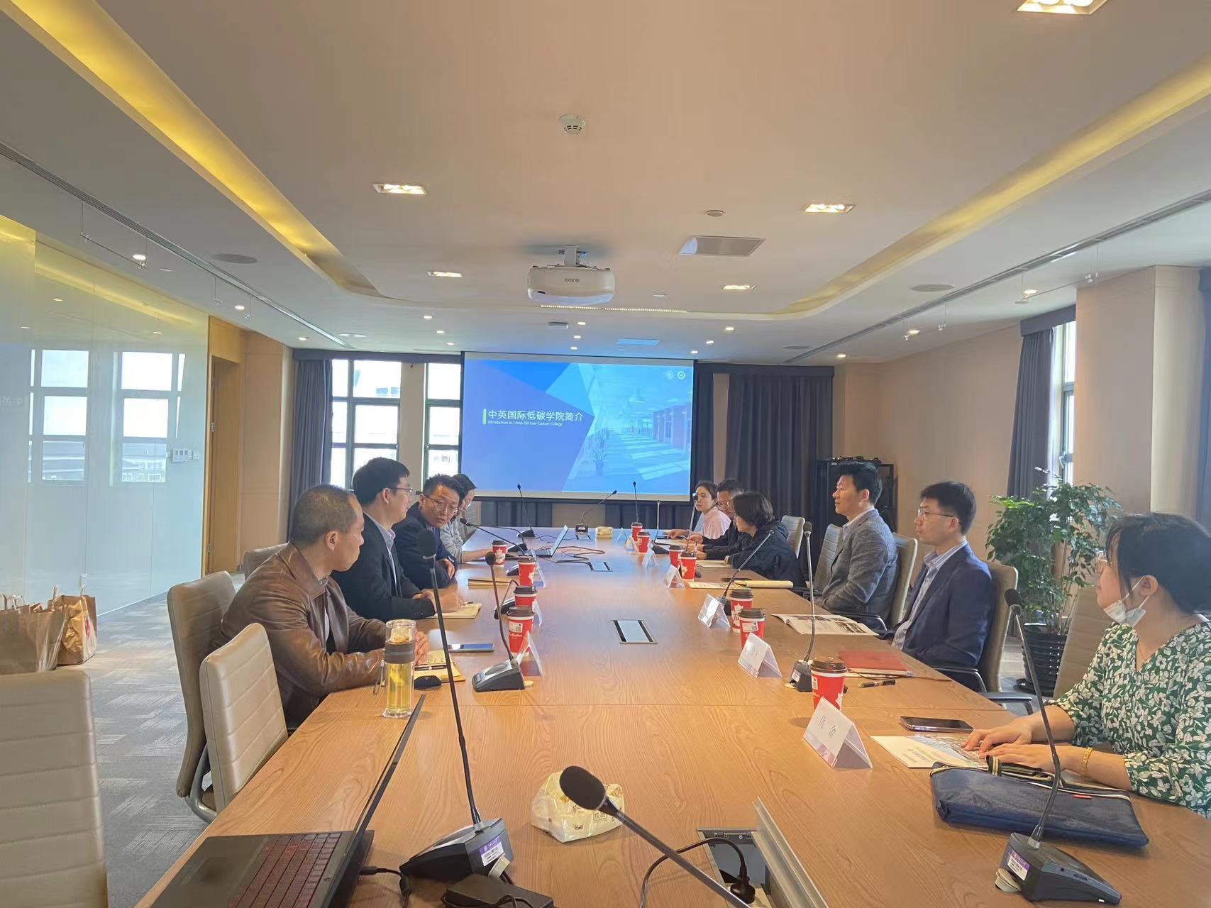 4月19日上午,南京航空航天大学综合能源研究院执行院长刘向雷,副教授连文磊、杨理理、张凯等一行来访中英国际低碳学院开展深入调研交流。低碳学院院长助理任涛、鞠生宏,科研办公室主任陈雪,实验室管理办公室徐峥出席交流会。座谈会在432会议室举行。