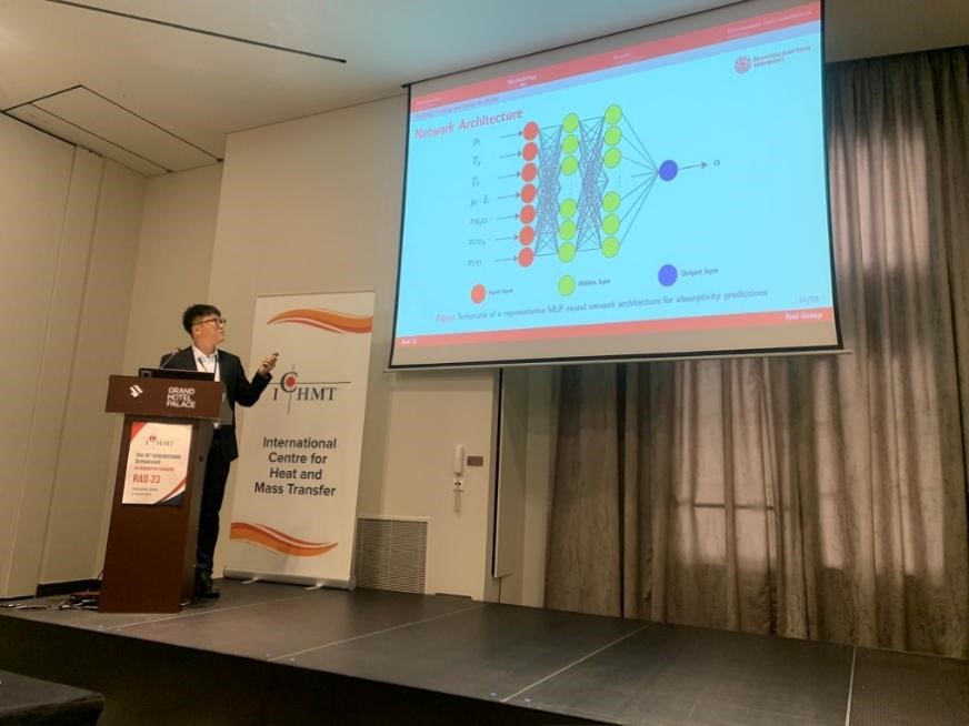 我院2023级博士研究生陈玮同学在 “气体辐射”分会场作题为“A machine learning-based grey gas emissivity model for H2O-CO2-CO-N2 mixtures”的报告。他同任涛副教授的研究以机器学习为基础,开发了一种灰色气体发射率模型,以快速估计气体的辐射传递。这项研究通过使用多层感知器神经网络方法,解决了现有灰色气体混合模型依赖于二维查找表和多个近似步骤的问题,提高了计算的准确性和效率。为了提高用户的可访问性和可用性。