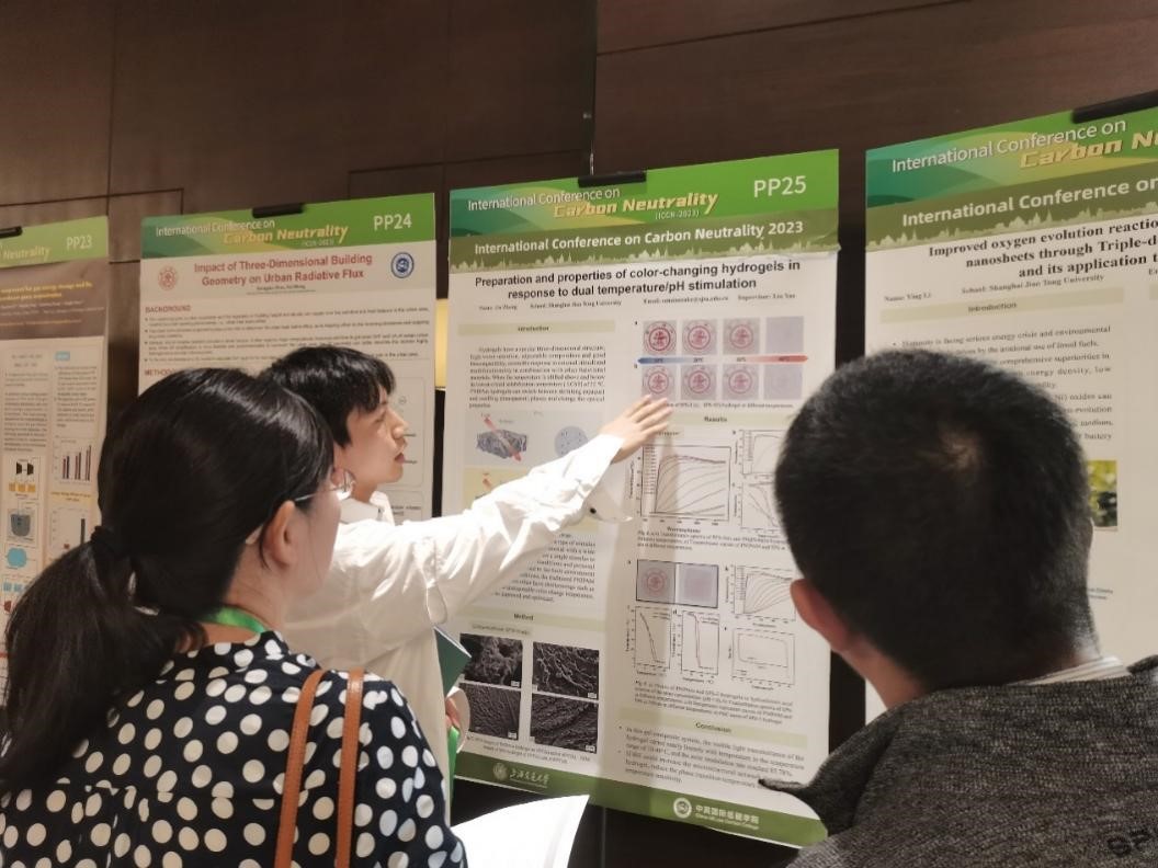 2023年10月20日至22日,2023碳中和国际学术会议在上海召开。我院2021级硕士研究生郑佳同学参会并作题为“温度/pH双重刺激响应变色水凝胶的制备及性能研究”的报告。该研究以十二烷基苯磺酸钠(SDBS)和N-异丙基丙烯酰胺(NIPAm)为原料,通过自由基聚合法成功制备了具有温度和pH双刺激响应的复合变色水凝胶(SPS)。相对于传统的PNIPAM水凝胶,SPS复合水凝胶具有高太阳光调制率、线性温度响应和多刺激变色等优势,为智能变色水凝胶提供了更广泛的应用场景。