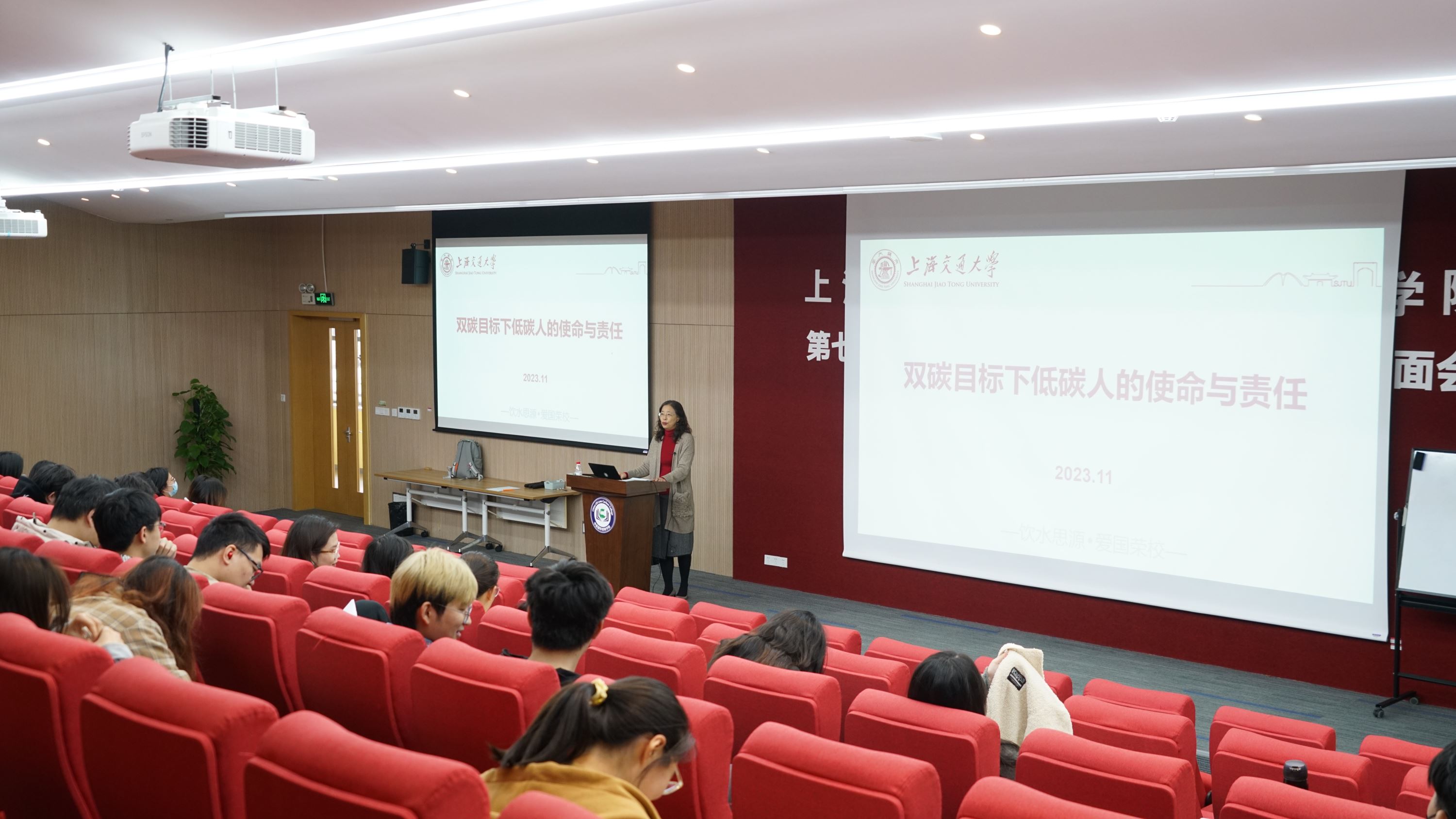 课程的最后,许敏勉励大家,新的时代带给低碳学子新的使命与挑战,希望学院低碳学子学习、秉承交大精神和低碳精神,感受时代的感召,勇担时代重任,以更加开放、创新、进取的态度,为推动双碳目标的实现贡献属于低碳人的力量。