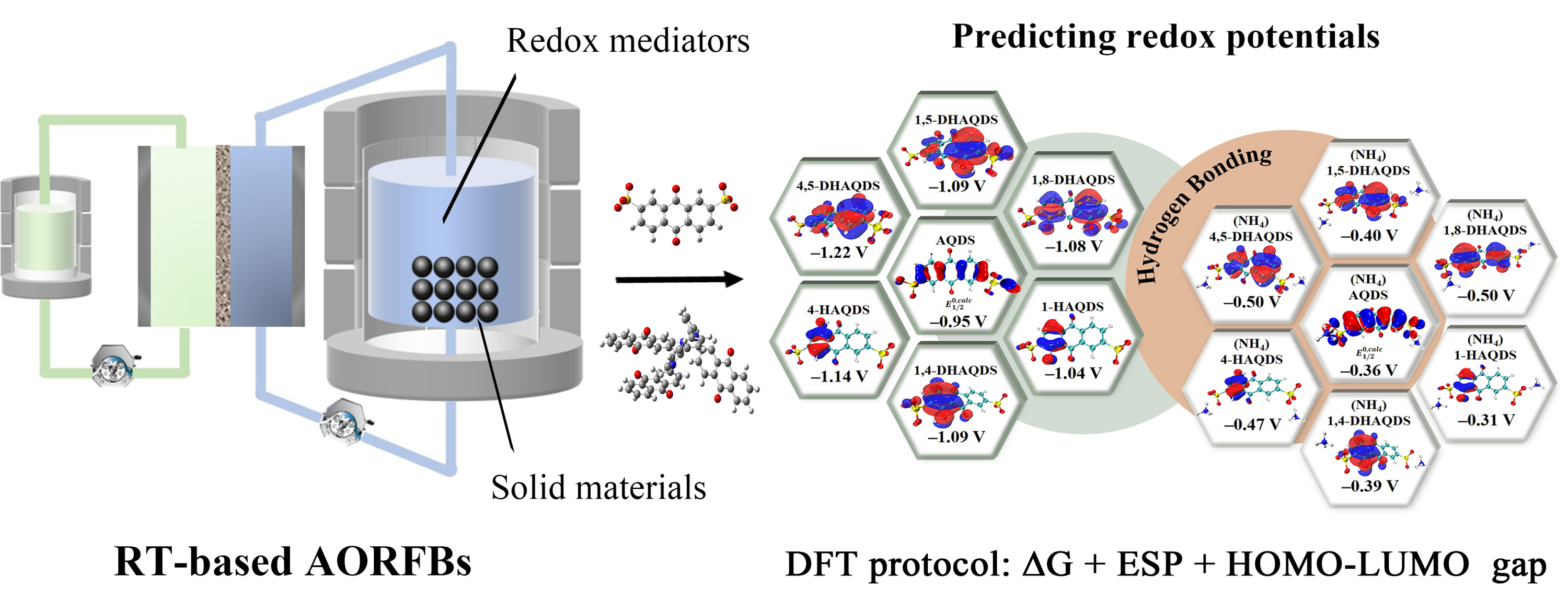 图1. 水系有机靶向液流电池中的DFT预测方案。