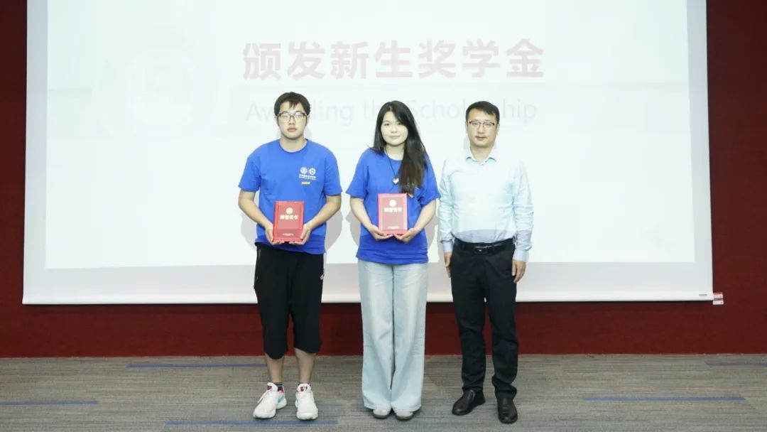 在典礼上,学院对2024级硕士新生中的优秀学子进行了表彰,学院党委书记宋续明及教师代表一同为获奖新生颁发奖学金。
