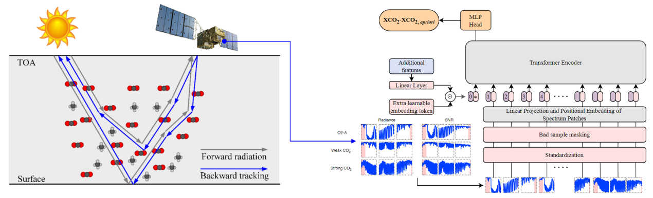 大气二氧化碳(CO₂)浓度的精准监测对于全球碳循环研究和气候政策制定至关重要。卫星遥感技术可以在全球尺度提供二氧化碳柱浓度(XCO2)的测量数据,但传统的反演方法依赖于辐射传输计算和优化迭代算法,计算成本高昂,难以满足实时监测需求。