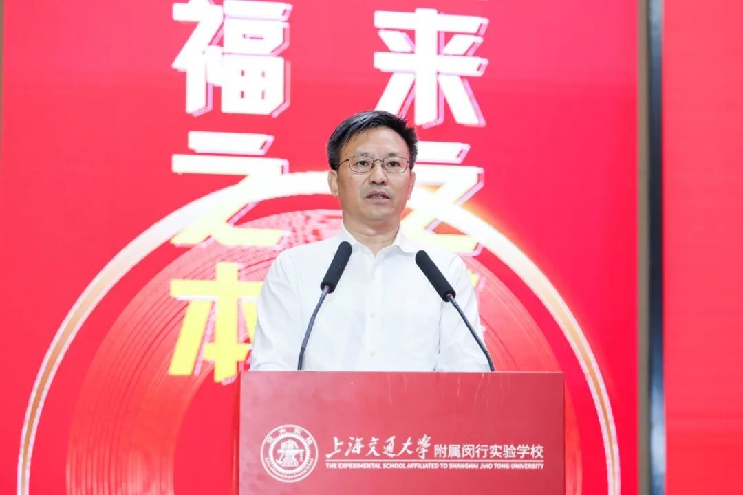 揭牌仪式上,陈华文在致辞中回顾了学校从筹划、设计、建设以及开办的历程,对在交大实验学校建设全过程中的战略定位、建设目标给予充分肯定,并展现出闵行区委区政府为办好让人民满意的教育的信心和决心;同时也对交大实验学校寄予厚望,希望学校强化科技与人文双轮驱动,凝练科创特色,厚植人文底色,打造文理结合、艺体融通的课程体系,培养阳光、担责、创造、优雅的新时代青年,不负众望、乘势而上,为闵行基础教育高质量发展增添光彩。