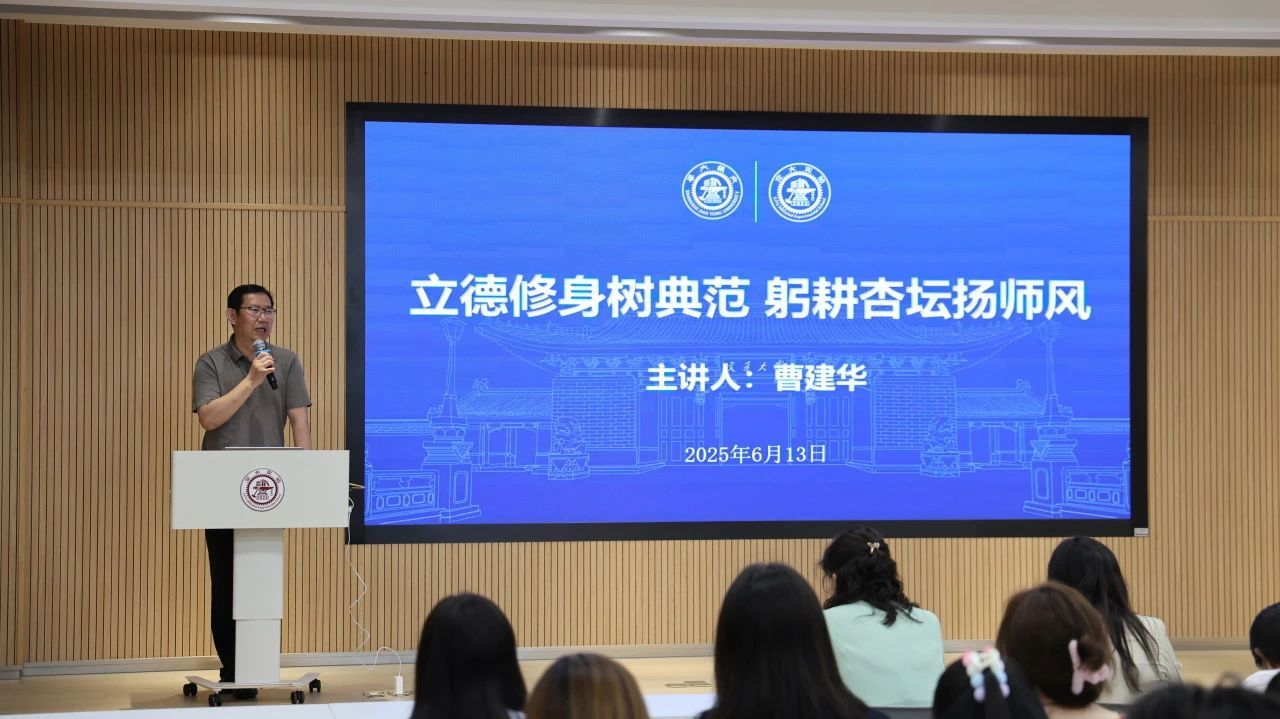 曹建华以“立德修身树典范,躬耕杏坛扬师风”为主题,结合交大实验学校建设工作特色,深度剖析教育本质,分享育人经验智慧。他深入阐述交大实验“学校、教师、学生相互成全”的教育管理理念,指出师生要通过良性互动和双向循环,让教育成为共同探索成长路径的过程。他强调,希望交大实验教师始终坚持“成为有效的学习支持者”教风,锚定“聚焦人人、面向人人、成就人人”方向,努力实现专业能力与综合素养的双重突破,与学校、学生合力书写立德树人美好篇章。
