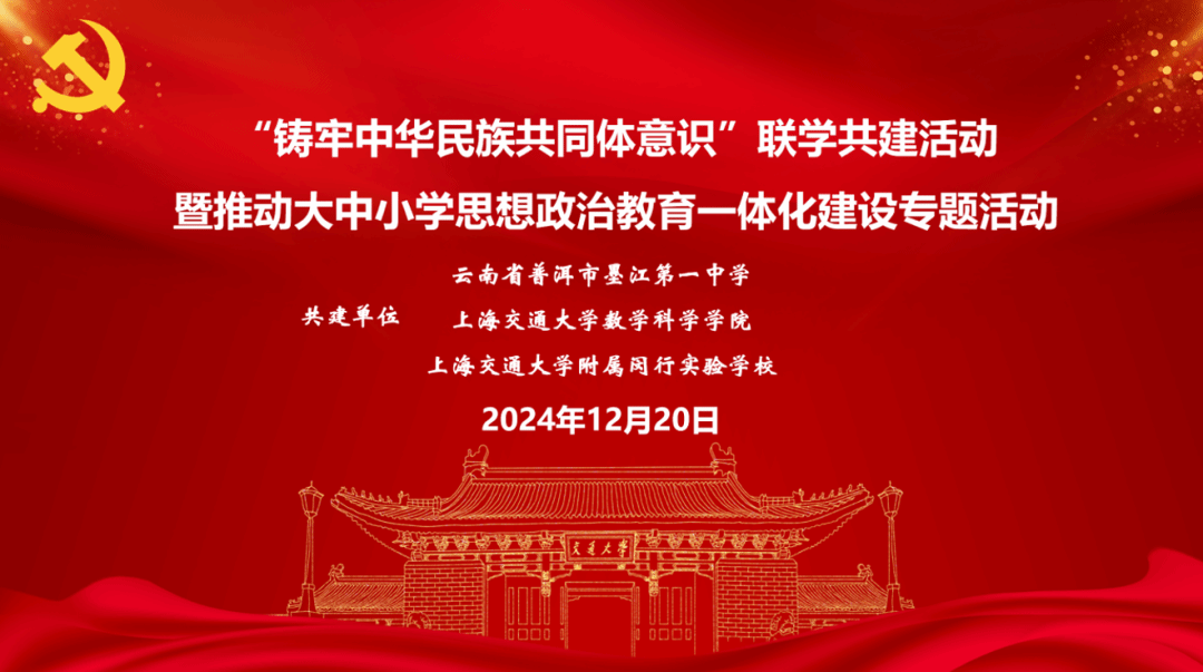 为深入推进沪滇协作双向赋能,凝聚全学段贯通式育人合力,12月20日下午,欧宝app官方网站下载附属闵行实验学校同欧宝app官方网站下载数学科学学院、云南省墨江第一中学通过线上平台开展“铸牢中华民族共同体意识”联学共建活动暨“推动大中小学思想政治教育一体化建设”专题活动,共同学习习近平总书记给云南普洱民族团结誓词碑盟誓代表后代回信精神。