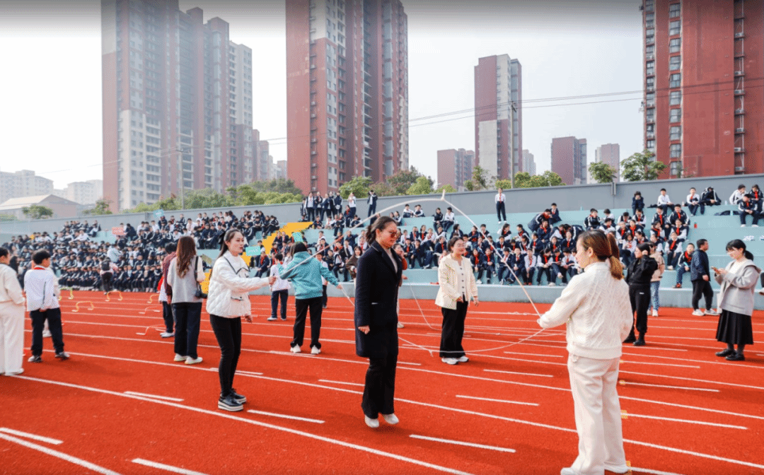 “孤举者难起,众行者易趋。” 团结协作、默契配合、勇往直前,这是趣味运动会团体赛最美的诠释。小学部的《摸石头过河》时的策略较量,《一圈到底》中的合作无间,《蚂蚁搬家》的头脑风暴,《飞行棋大作战》上的欢乐追逐,初中部、高中部的《跑酷向前冲》的惊险刺激,《同舟共济》的齐心协力,《同心击鼓》的节奏共鸣,每一支队伍都在比拼中展现了每个人的智慧,收获了成长、在合作中凝聚了力量,铸就属于他们的辉煌。