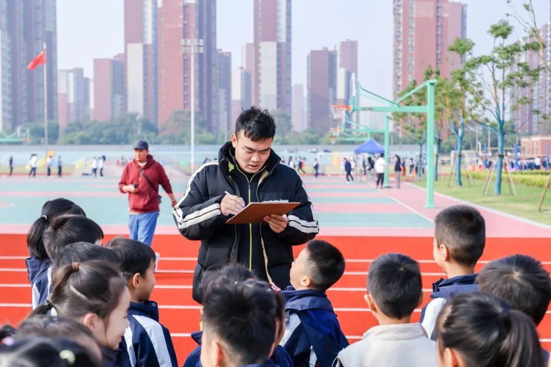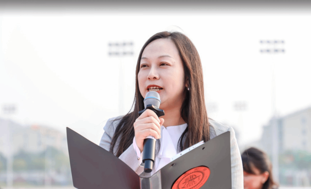 裁判员代表周丽老师为各位师生做好赛前动员与安全注意事项,保障师生安全同时引领裁判团队为趣味运动会保驾护航。