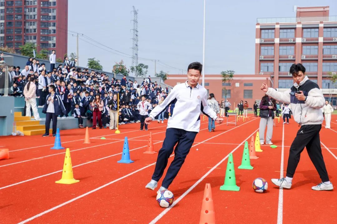 初中部,高中部的跑酷向前冲与袋鼠跳尽显勇者风范,同学们跨越障碍、奋力跳跃,汗水如晶莹露珠挂满脸庞这些个人竞技赛项目,不仅是对个人能力的深度挖掘,更是趣味与创新的完美融合。无论是飞盘的精准投掷、篮球的空心入网、足球的灵动技巧还是网球的有力冲击,都展现了个人竞技的无限魅力! 奋斗的惊艳瞬间,感受赛场上健儿们的拼搏英姿吧!