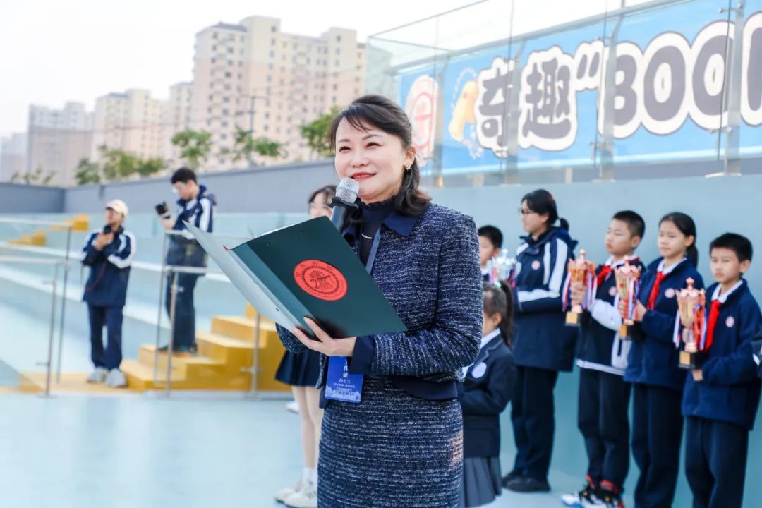 紧接着,交大实验副校长冯志兰庄重地宣读最终趣味运动会获奖名单,全场的气氛也随之高涨,大家都在期待着属于自己班级和个人的荣耀时刻。