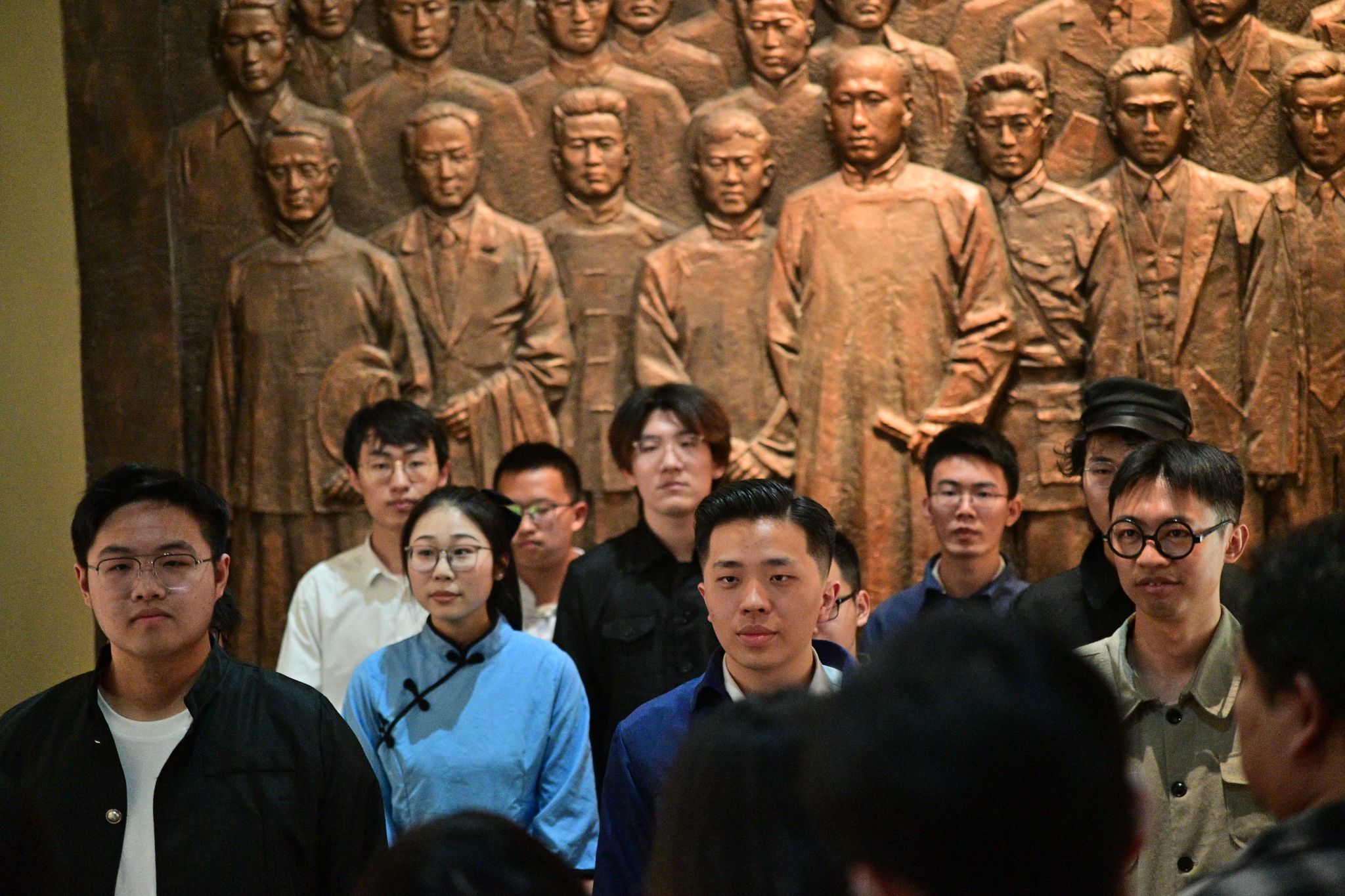 下午一点,由交大师生自编自演的校史剧在校史博物馆上演。演出聚焦交大百年党史故事,突破传统舞台形式,将博物馆实景与戏剧表演深度融合。从1925年的初心涌动,到1940年的辗转入渝,再到1947年的护校运动和1949年交大学子的为国而战,观众跟随演员穿梭于各个历史场景中,深切感受交大精神的血脉传承。