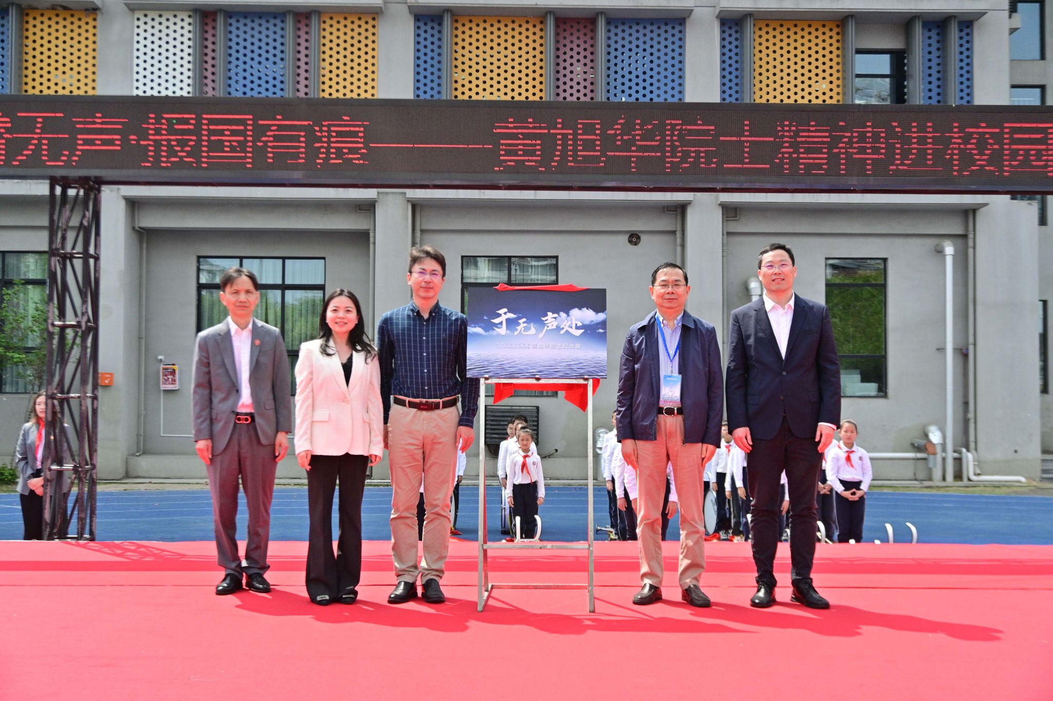 闵行区政府督导室、闵行区教育局、江川街道、交大实小、交大基础教育办公室和档案文博管理中心的相关领导共同为“于无声处——黄旭华院士精神进校园”主题展览揭幕。展览以图文和多媒体相结合的形式,生动展现了黄旭华院士从交大求学、投身核潜艇事业到成为“共和国勋章”获得者的光辉历程。档案文博管理中心向交大实小赠送了黄旭华院士珍贵档案仿制件。