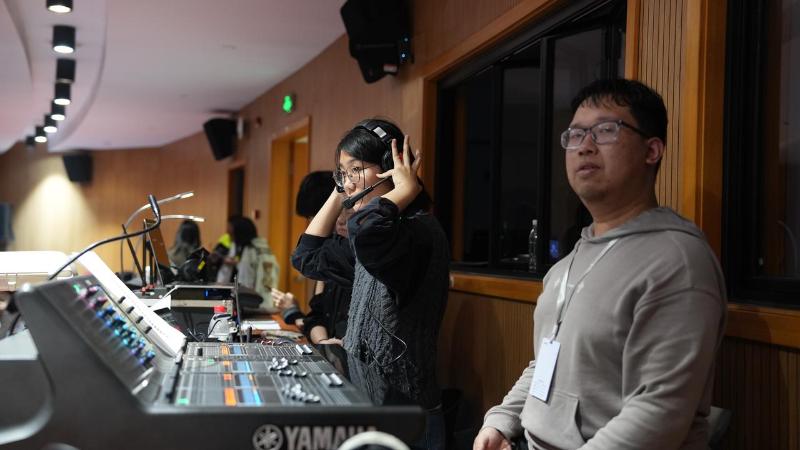 除了台前的演员和歌者,众多幕后工作者们的付出构成了这场演出最坚实的基础。从前期耗时2年,完成26首原创音乐的作曲、作词、编曲与3万字的剧本,到200余天的全剧编排、舞美设计、宣传设计,再到进场、演出时的音响、舞美执行,都离不开各工作组的全力合作。同学们利用课余时间,自发学习戏剧理论、音乐理论、舞台机械技术、灯光技术、扩声技术等专业知识与技能,致力共创精彩舞台。