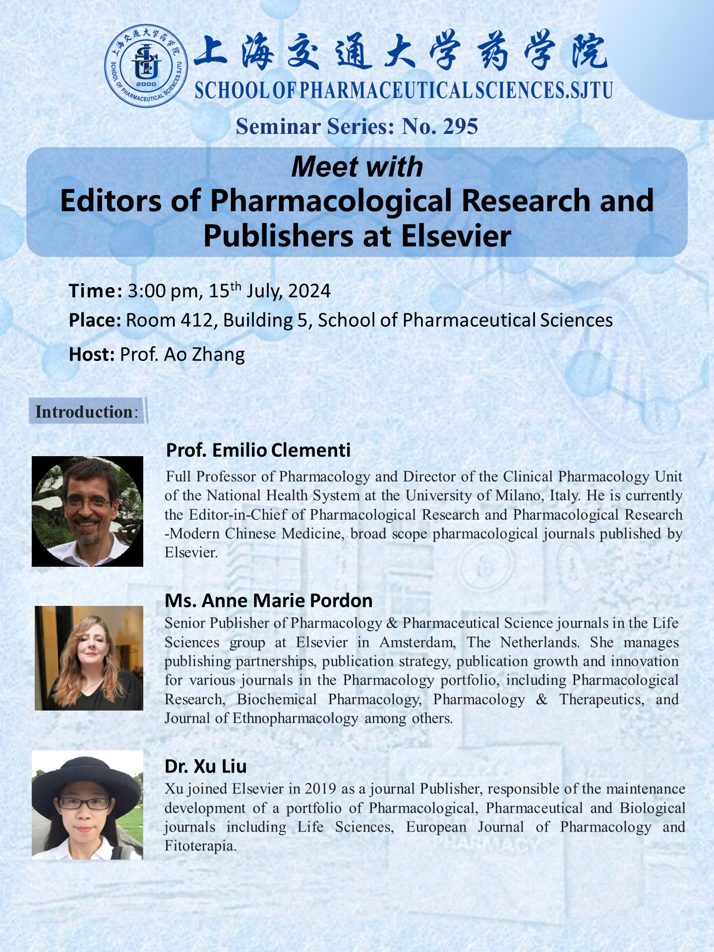 Meet withEditors of Pharmacological Research andPubishers at Esevier