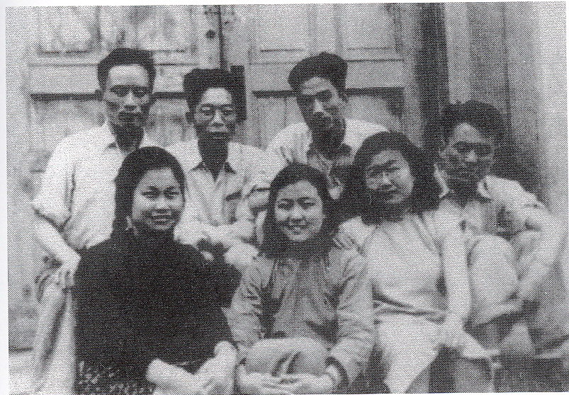 图2 1949年,四二六被捕的部分学生返校后合营(前排左起:杨念如、魏瑚、章苏斐、郭可评;后排左起:刘大成、马昭彦、陈元嘉)