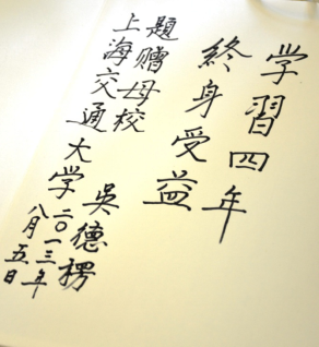 从1945年离开祖国,到现在已然六十余年,我最大的感想就是这么多年,一直在国外拼搏,虽然时时刻刻想念祖国和母校,可惜不能回来,对其无所贡献,不免内心有愧,所以我总是尽力做一些贡献来回馈祖国和母校对我的恩情,传承“饮水思源,爱国荣校”的交大精神。